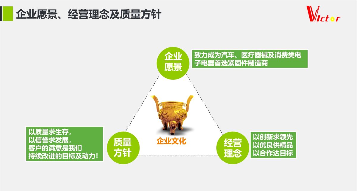 以人为本、品质至上、诚信创新、务实专注、顾客满意、公司满意、员工满意